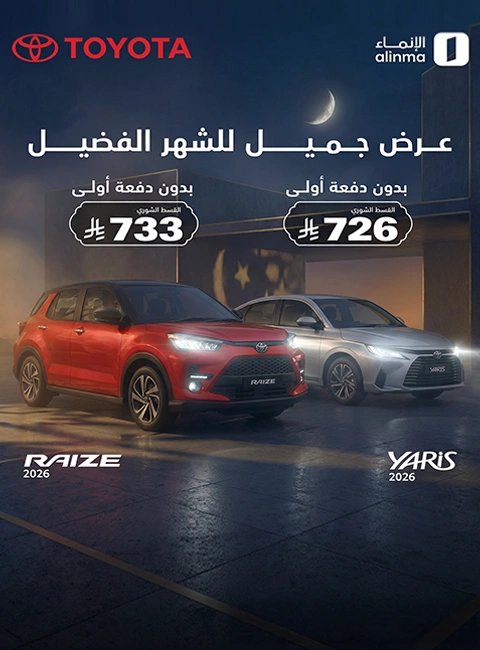 تعرّف على عروضنا المميزة لسيارات تويوتا بالشراكة مع إنماء ، ينتهي العرض في 2026, March 31